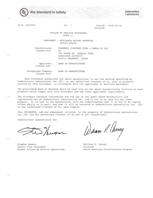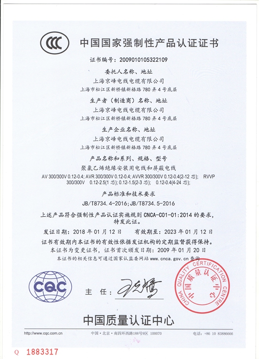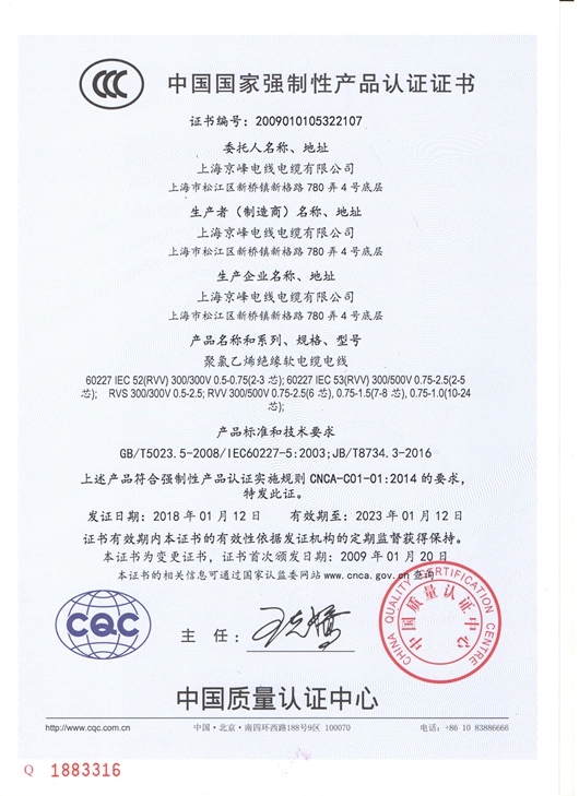 公司具有先進的生產,檢測實驗設備和配套的工裝器具,生產加工技術先進,檢測手段完善。公司生產經營的全過程嚴格按ISO9001;2000質量管理體系標準的要求實行全面的質量控制,從而使產品質量得到保證。公司生產的塑料電線獲得了國家質量認證中心頒發的國家強制性生產質量認證證書(CCC)、UL758標準。公司先后被評為“全國產品質量監督抽查合格企業”“國家監督檢查質量穩定合格企業”。公司依靠過硬的產品質量和良好的信譽贏得了廣大用戶的一致信賴。公司的質量方針是“科學管理、持續發展、追求卓越、用戶至上”,“讓用戶放心,使客戶滿意”是我們每位員工對廣大用戶最基本的承諾。